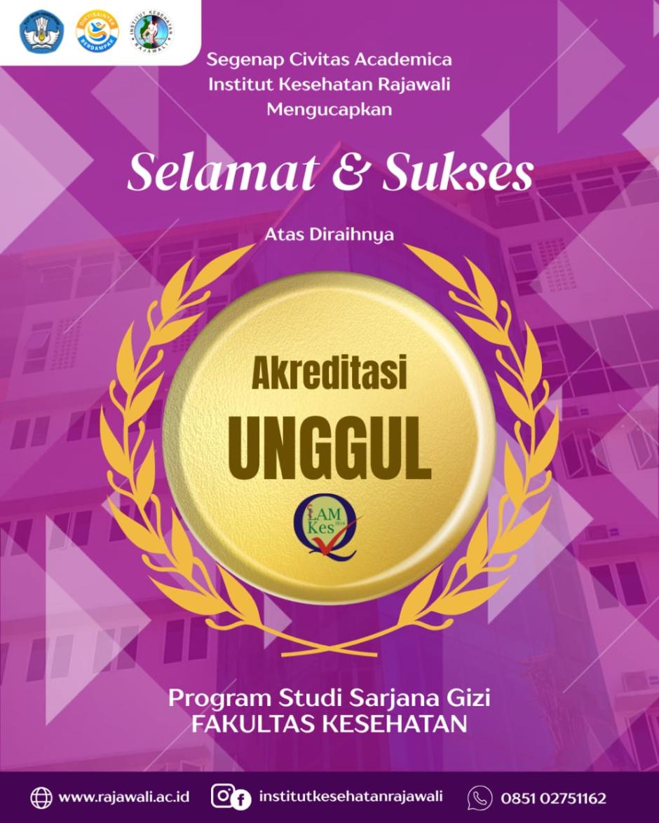 Selamat untuk akreditasi yang telah dicapai oleh Fakultas Kesehatan Program Studi Sarjana Gizi mendapatkan hasil UNGGUL !